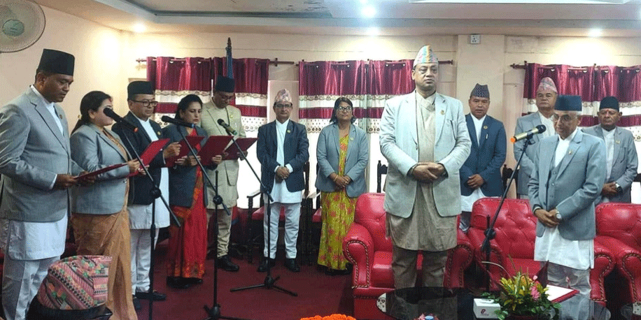 हेटौंडा । बागमती प्रदेशका नवनियुक्त ५ मन्त्रीहरुले शुक्रबार पद तथा गोपनीयताको शपथ ग्रहण गरेका छन् । मुख्यमन्त्री इन्द्रबहादुर बानियाँले बागमती प्रदेशको मन्त्रिपरिषद्लाई पूर्णता दिएसँगै नवनियुक्त ५ मन्त्रीले शपथ गरेका हुन् । प्रदेश प्रमुख दीपकप्रसाद देवकोटाले उनीहरुलाई सपथ ग्रहण गराएका हुन् ।