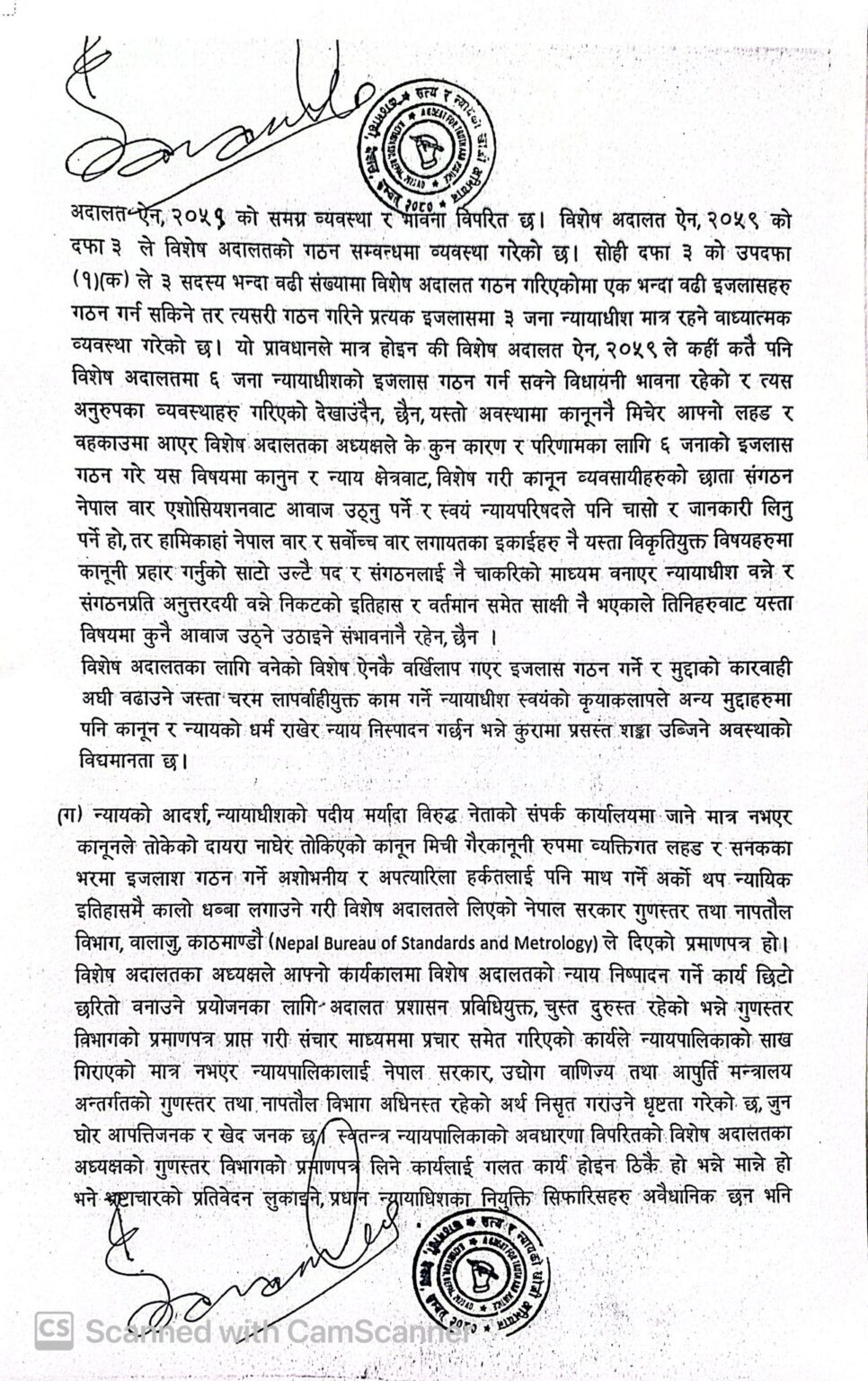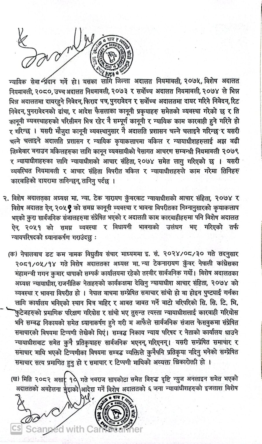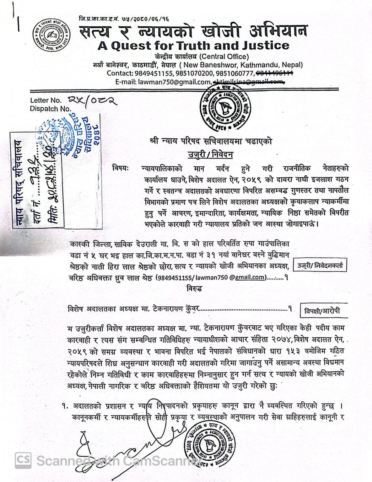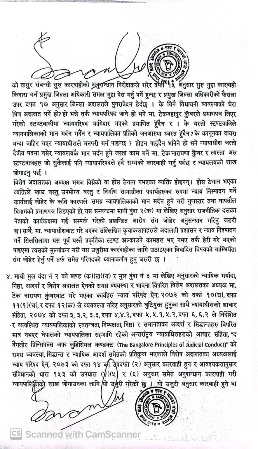 साथै, अदालतको ऐन, व्यवस्था र भावनाविपरित विशेष अदालतमा ६ जना न्यायाधीशको इजलाश गठन गरेर दृष्टिन्युज डटकम अनलाइनसमेत भएको अदालतको अवहेलना मुद्दामा आदेश गरेको विषय पनि उजूरीमा उल्लेख छ ।