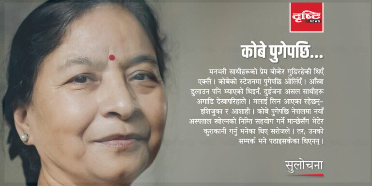 टोकियोलाई बाइबाई गरी कोबे जाने सुपर एक्सप्रेस बुलेट ट्रेन चढेकी थिएँ । मलाई त्यहाँसम्म पु¥याउने असल मित्र सुसुमुसँग त राम्रोसँग हात हल्लाउनै पनि भ्याएको थिएन । ट्रेन अगाडि बढिहाल्यो । मनभरी सुसुमुले बिहान सबेरैदेखि माया गरि पकाएको भातको याद पनि आइरह्यो । उनले मलाई “भात खाएपछि खाली बट्टा फ्याँक्नु है !’’ भनेको कुराले मनमनै हाँसो उठेपनि उनको अभिभावकत्वलाई सम्झाइ रह्यो ।