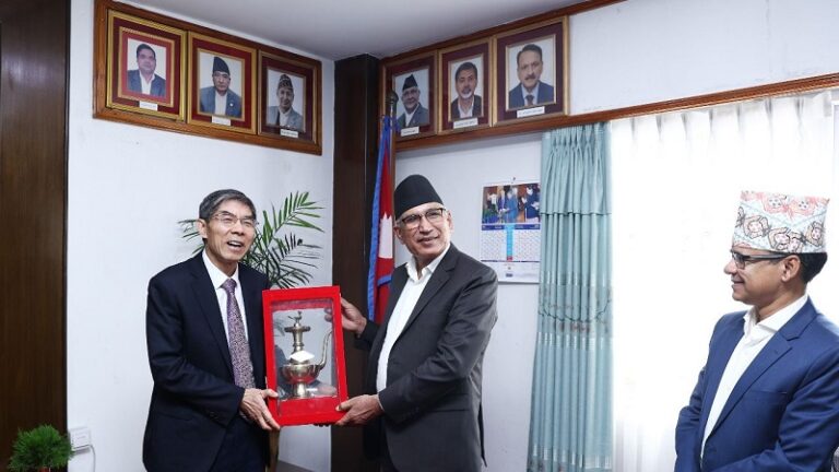 काठमाडौं । उपप्रधानमन्त्री एवं अर्थमन्त्री विष्णुप्रसाद पौडेल र चीनका भन्सार प्रशासनका उपमन्त्री वाङ्ग लिङजुनबीच शिष्टाचार भेटघाट भएको छ । बिहीबार अर्थमन्त्री पौडेल र उपमन्त्रीबीच भेटवार्ता भएको हो ।