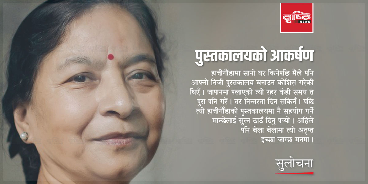 हात्तीगौंडामा सानो घर किनेपछि मैले पनि आफ्नो निजी पुस्तकालय बनाउन कोशिस गरेकी थिएँ । जापानमा पलाएको त्यो रहर केही समय त पुरा पनि गरें । तर निन्तरता दिन सकिनँ । ठाउँ र व्यवस्थापनको अभावमा त्यो सपना भने पुरै साकार हुन सकेन ।