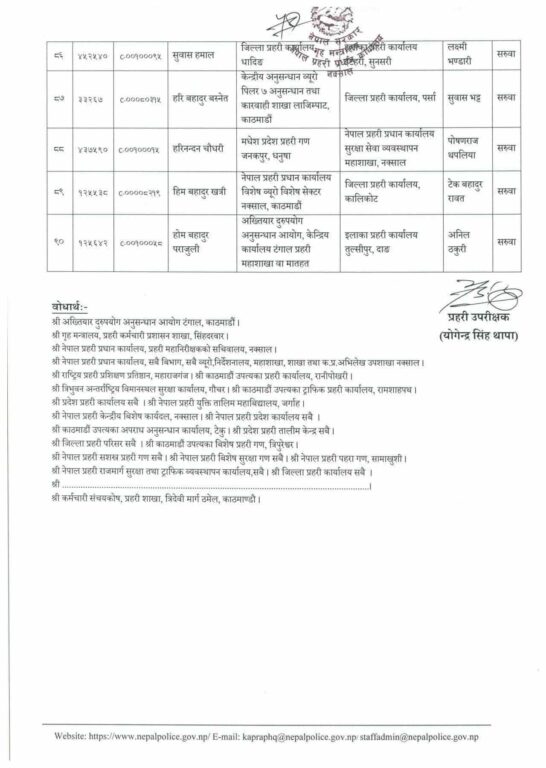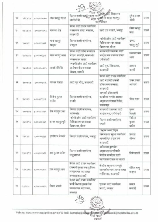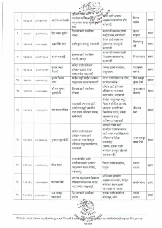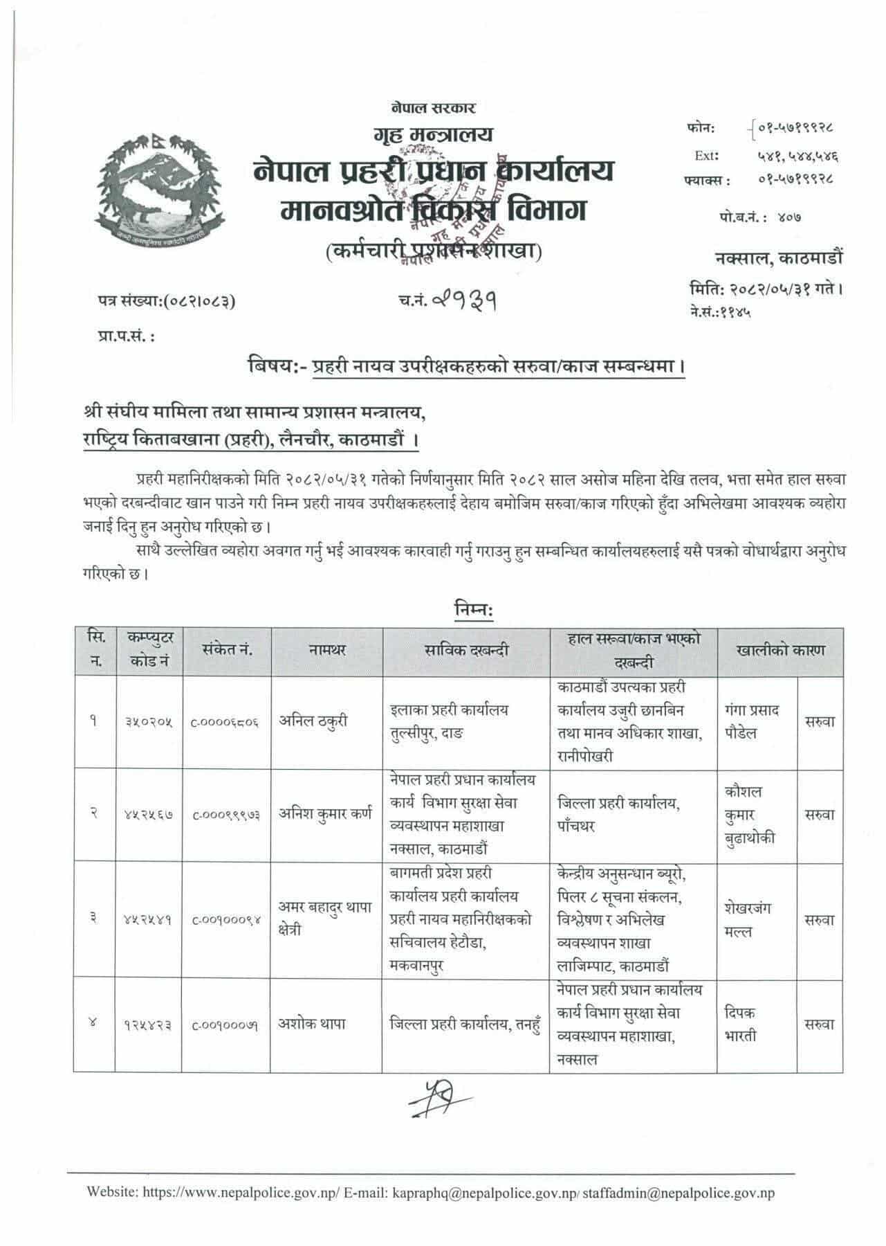 प्रहरी महानिरीक्षकको भदौ ३१ गतेको निर्णयानुसार असोजदेखि तलब, भत्तासमेत हाल सरुवा भएको ठाउँबाट पाउने गरि उनीहरुको काज तथा सरुवा गरिएको प्रहरी मुख्यालयले जनाएको छ ।