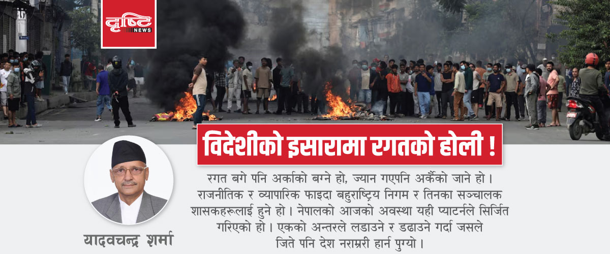 गत भदौ २३ गते नेपालको सडकमा आगो दन्कियो । देशभर नारा, जुलुस र भिडैभिड । निहुँ थियो– सामाजिक सञ्जाल बन्द गर्ने सरकारी निर्णय । मानिसमा आक्रोश थियो, जेनजी नाममा स्वार्थको रोटी सेक्नेहरूका लागि सुवर्ण अवसर थियो । राष्ट्रिय सम्पत्ति, अमूल्य ऐतिहासिक दस्ताबेज र राष्ट्रिय निधिहरू केही घण्टामै जलेर ध्वस्त भए । यस आन्दोलनले देशलाई कमसेकम पनि ५० वर्ष पछि धकेलिदियो ।