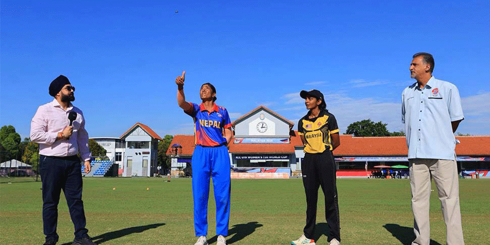 काठमाडौँ । नेपाली महिला क्रिकेट टिमले मलेसियाविरुद्धको सिरिजको अन्तिम तथा निर्णायक खेल आज खेल्दैछ । यस खेलमा मलेसियाले टस जितेर पहिला ब्याटिंग गर्ने भएको छ । योसँगै नेपालले पहिला बलिङ गर्ने छ ।