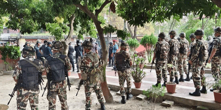 संभावित झडपलाई मध्यनजर गर्दै प्रदेश प्रमुखको कार्यालय परिसरमा ठूलो संख्यामा नेपाली सेना परिचालन गरिएको छ।