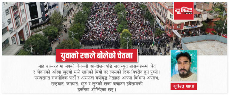 भाद्र २३–२४ मा भएको जेन–जी आन्दोलन पछि सत्ताच्युत शासकहरूमा चेत र चेतनाको आँखा खुल्यो भन्ने लागेको थियो तर त्यसको ठिक विपरीत हुन पुग्यो । परम्परागत राजनीतिक पार्टी र असफल वयोवृद्ध नेताहरू आफ्ना विभिन्न अपराध, राष्ट्रघात, जनघात, झुट र लुटको लङ्का बचाउन हदैसम्मको हर्कतमा ओर्लिएका छन् ।