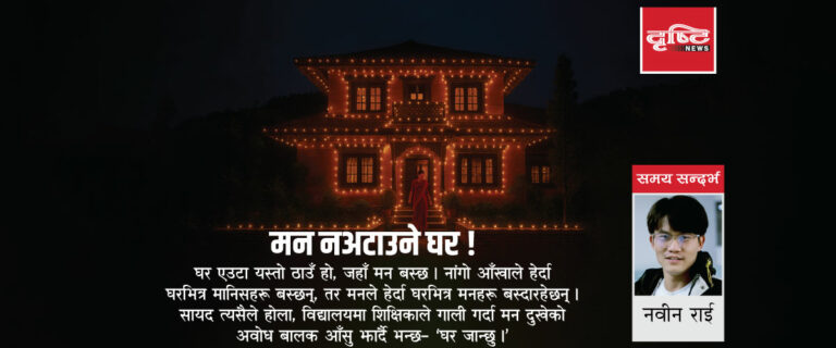 घर भनेको केवल बस्ने ठाउँ होइन, बाँच्ने ठाउँ हो । त्यहाँ बिहानको चियामा माया मिसिएको हुन्छ । तन्नाभन्दा अगाडि मुस्कान ओछ्याइन्छ । ढोका ताला होइन, विश्वासले बन्द हुन्छ । घरलाई सुन्दर बनाउने चित्रहरू होइनन्, त्यसमा बस्ने आत्माहरू हुन् । माया, आदर र आत्मीयताको स्पर्श बिना घर केवल वास्तुशिल्प मात्रै बन्छ ।