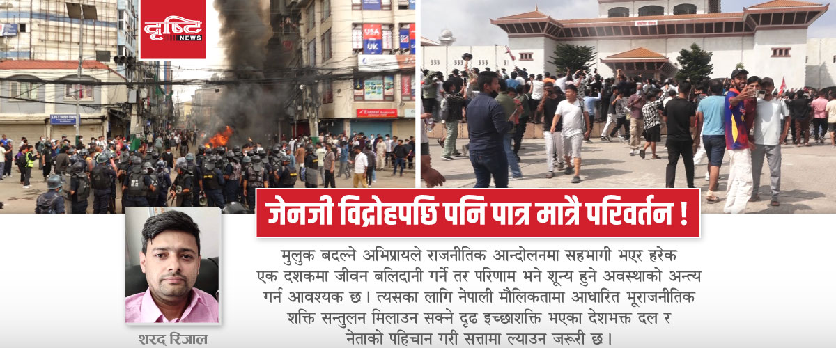 हालसालैको जेनजी विद्रोह पनि राज्यको आधार संरचनामा आमूल परिवर्तन गर्न नसकेर पुरानै नियति दोहोरिँदै पात्र परिवर्तनमा टुङ्गिएको छ । २८वर्षमुनिका नवयुवाहरूको स्वतःस्फूर्त विद्रोहपछि केपी ओली सरकार अपदस्त भएर सत्ता राजनीतिमा अमुक पात्रहरूको हालीमुहाली र आगमन भयो । पूर्वप्रधानन्यायाधीश सुशीला कार्कीको नेतृत्वमा चुनावी सरकार बन्न पुग्यो । यो सरकार जेनजी आन्दोलनको माग र मुद्दा पूरा गर्ने भन्दा पनि चुनाव गराउन मात्रै अग्रसर देखिन्छ ।