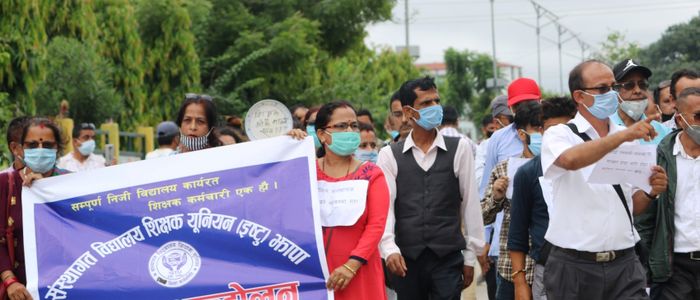 तलब–सुविधाको माग गर्दै निजी विद्यालयका शिक्षक आन्दोलित