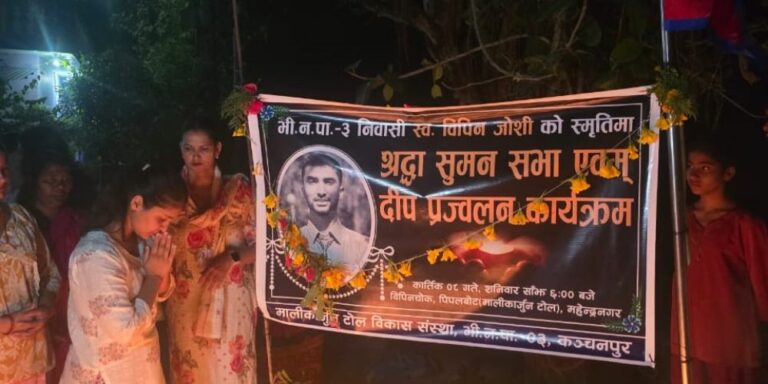 आज साँझ एक कार्यक्रमका बीच यहाँको भीमदत्त नगरपालिका–३ स्थित मालिकार्जुन टोलमा ‘विपिन चोक’ नामाकरण गरिएको हो । कार्यक्रममा विपिनको सम्झनामा दीप प्रज्वलनसहित टोलको नामाकरण गरिएको थियो ।