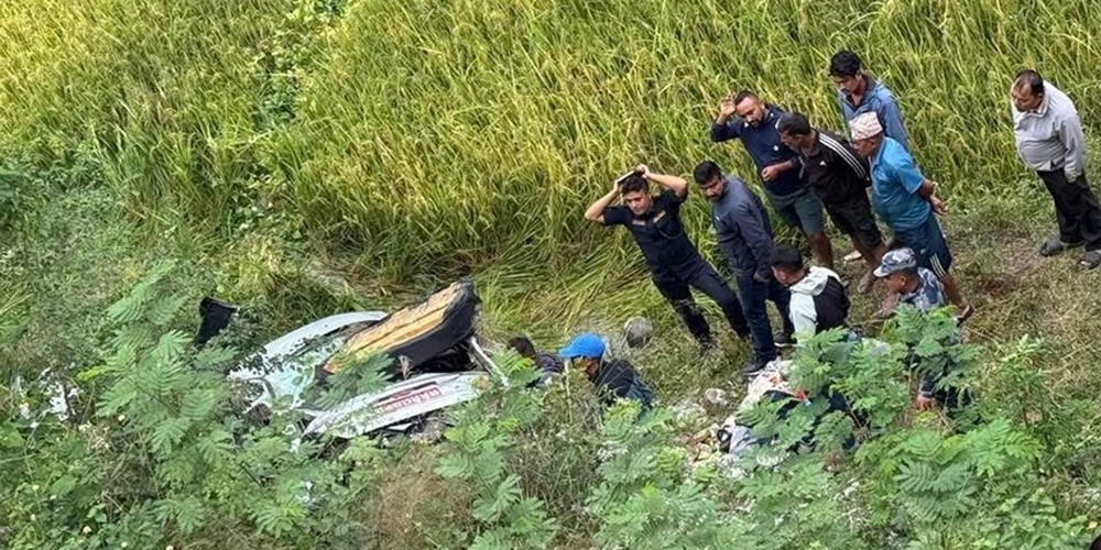सिन्धुलीमा सडकबाट ४२ फिट तल खस्यो कारः श्रीमान्‌को मृत्यु, श्रीमती र छोरा घाइते