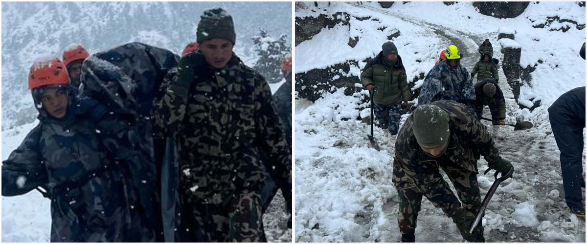 काठमाडौं । नेपाली सेनाले मनाङका विभिन्न ठाउँमा हिमपातमा फसेका १५ सय जनाको उद्धार गरेको छ ।