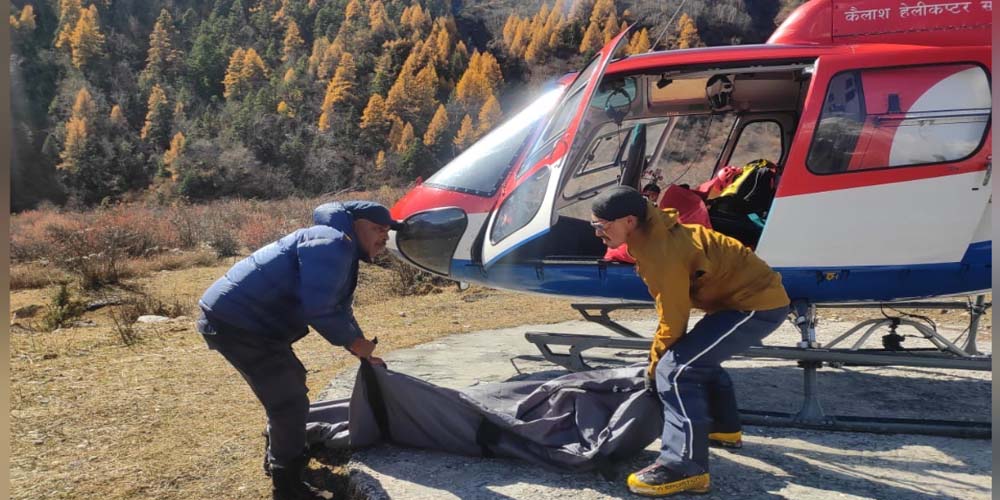 आरोहीको शव हेलिकोप्टरमार्फत सामागाउँ ल्याइएको छ । पाङबारी हिमालबाट फर्कने क्रममा तीन इटालियन नागरिक र एक नेपाली सहयोगी गत बुधबारदेखि पहिलो शिविर र आधार शिविरमा अलपत्र परेका थिए । फरिनातो र गापुटो हिमाल आरोहण गर्न नसकेपछि फर्कने क्रममा हिमपातका कारण अलपत्र परेका बताइएको छ ।