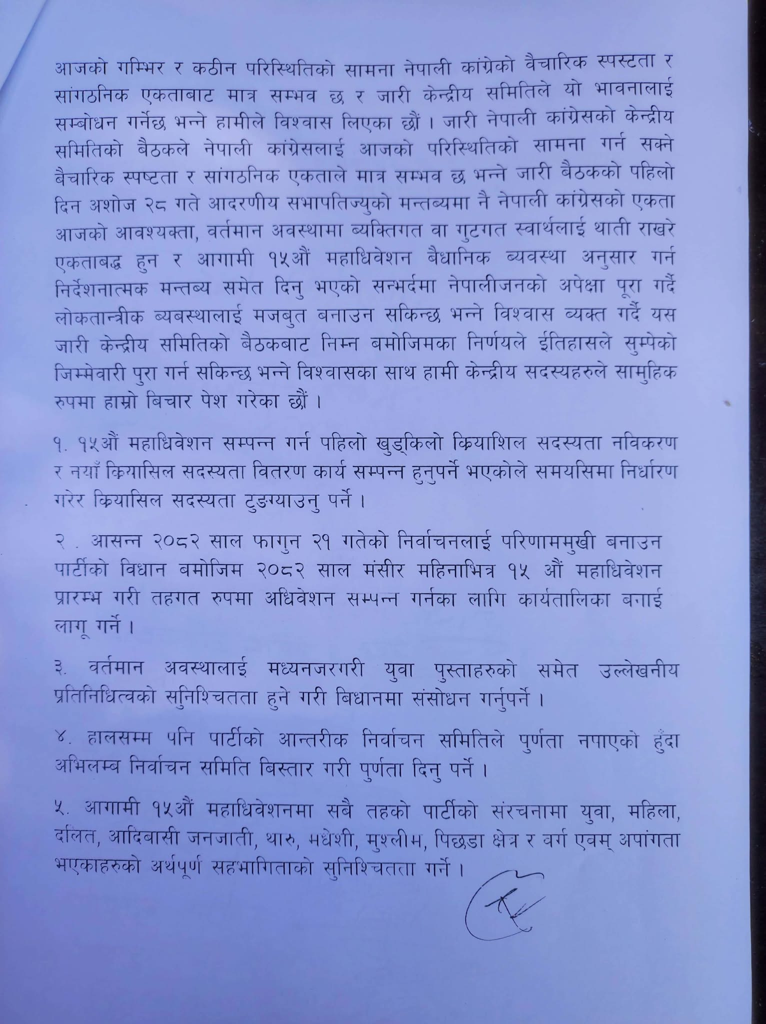 कांग्रेस संस्थापन पक्षका २५ केन्द्रीय सदस्यले राखे ६ बुँदे माग