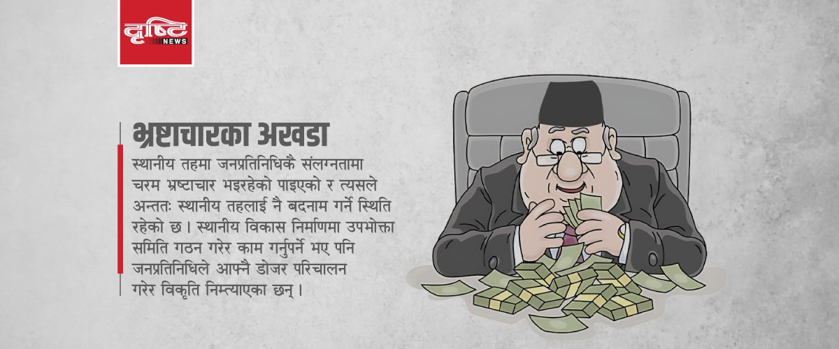 स्थानीय तहमा जनप्रतिनिधिकै संलग्नतामा चरम भ्रष्टाचार भइरहेको पाइएको र त्यसले अन्ततः स्थानीय तहलाई नै बदनाम गर्ने स्थिति रहेको छ । स्थानीय विकास निर्माणमा उपभोक्ता समिति गठन गरेर काम गर्नुपर्ने भए पनि जनप्रतिनिधिले आफ्नै डोजर परिचालन गरेर विकृति निम्त्याएका छन् ।