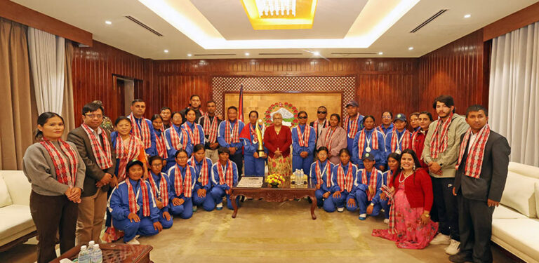 काठमाडौं । प्रधानमन्त्री सुशीला कार्कीले दृष्टिविहीन महिला टी-२० विश्वकपमा उपविजेता भई नेपाल र नेपालीको शिर उच्च राख्न सफल टोलीलाई बालुवाटारमा बोलाएर बधाई ज्ञापन गरेकी छन् ।