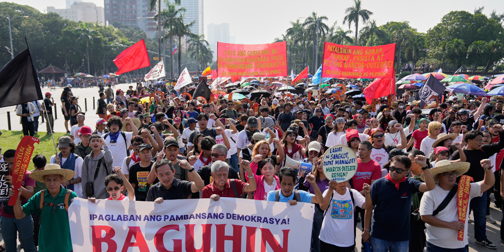 मनिला । फिलिपिन्समा आइतबार रोमन क्याथोलिक चर्चका पादरीहरूसहित हजारौँ नागरिकले बाढी नियन्त्रण परियोजनामा भएको ठूलो भ्रष्टाचार काण्डविरुद्ध सडकमा उत्रिएका छन् । प्रदर्शनकारीहरूले देशलाई नै हल्लाइदिएको अनियमिततामा संलग्न शीर्ष सांसद र सरकारी अधिकारीहरूलाई तत्काल मुद्दा चलाउन र चोरी भएको रकम फिर्ता गराउन कडाइका साथ माग गरे ।
