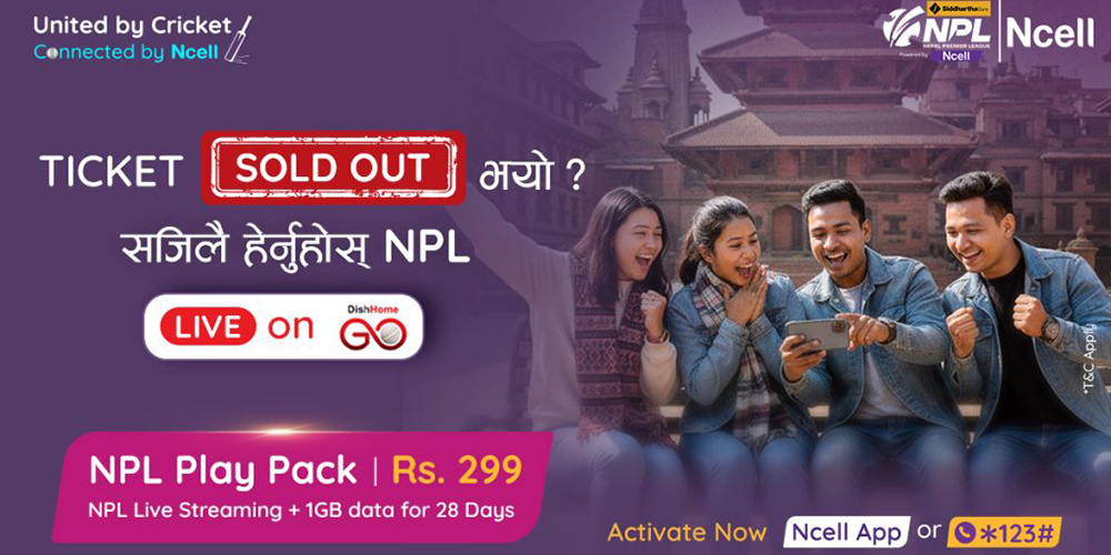 ग्राहकले बन्डल भएर आउने थप डेटा र सुविधाका आधारमा कर सहित २९९ रुपैयाँ पर्ने एनपीएल प्ले प्याक लिन सक्छन् । प्याकमा खेलको लाइभ मजा लिन डिसहोम गो एपमा सहज पहुँच सुनिश्चिन गरिएको छ ।