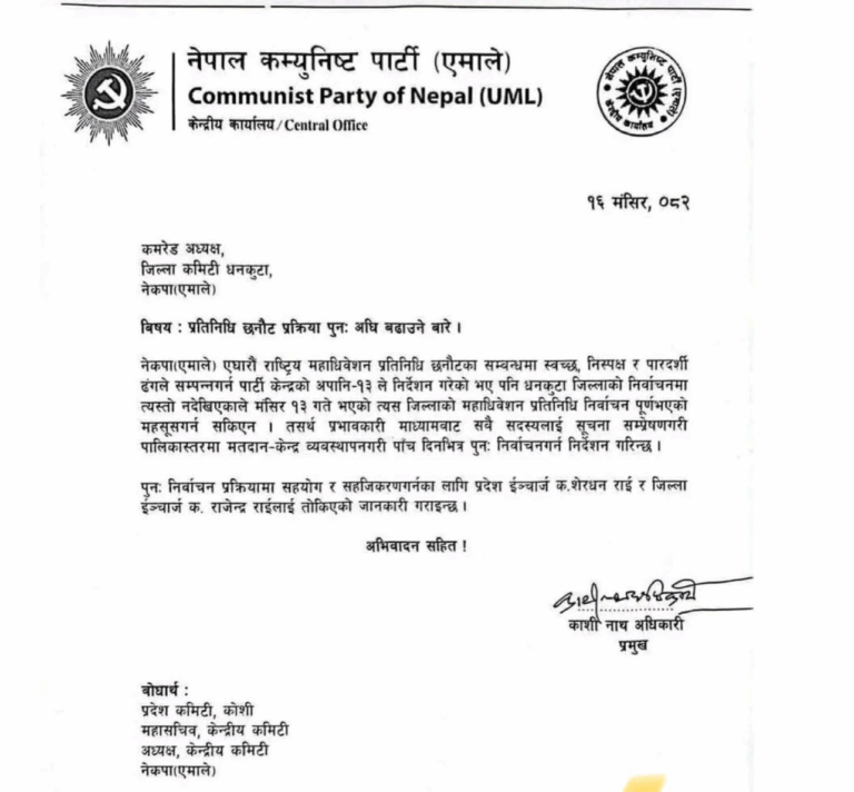धनकुटामा पनि पुनः प्रतिनिधि छान्न एमालेको निर्देशन