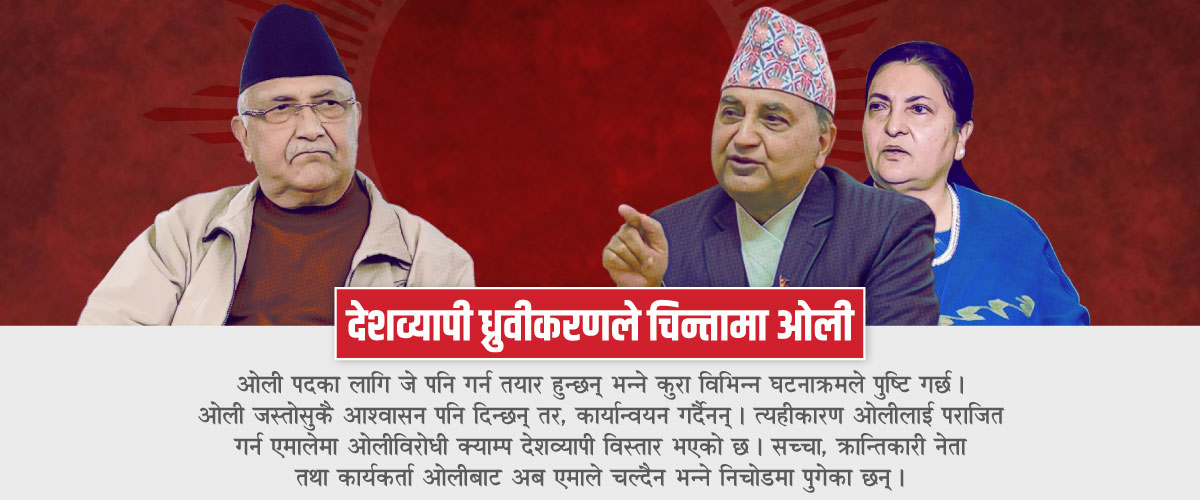 ओली पदका लागि जे पनि गर्न तयार हुन्छन् भन्ने कुरा विभिन्न घटनाक्रमले पुष्टि गर्छ । ओली जस्तोसुकै आश्वासन पनि दिन्छन् तर, कार्यान्वयन गर्दैनन् । त्यहीकारण ओलीलाई पराजित गर्न एमालेमा ओलीविरोधी क्याम्प देशव्यापी विस्तार भएको छ ।