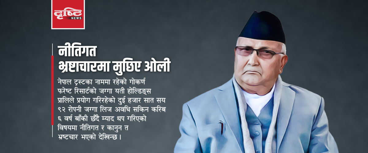काठमाडौंको गोकर्णेश्वर नगरपालिकामा नेपाल ट्रस्टका नाममा रहेको गोकर्ण फरेष्ट रिसोर्टको जग्गा यती होल्डिङ्स प्रालिले प्रयोग गरिरहेको दुई हजार सात सय ९२ रोपनी जग्गा लिज अवधि सकिन करिब ६ वर्ष बाँकी छँदै म्याद थप गरिएको विषयमा नीतिगत र कानुन त भ्रष्टचार भएको देखिन्छ ।