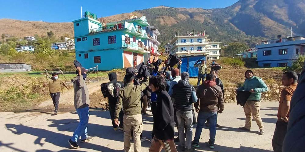 आइतबार पार्टीको कामका लागि गृह जिल्ला रुकुम पश्चिम पुगेका शर्मालाई रुकुमको सल्ले विमानस्थलअगाडि कालो झण्डा देखाएर कार्यकर्ताले विरोध जनाएका हुन् ।