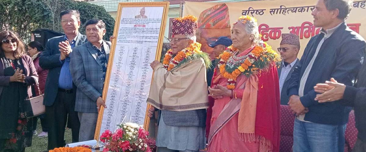 काठमाडौं । वरिष्ठ साहित्यकार एवं पूर्वप्रधानमन्त्री लोकेन्द्र बहादुर चन्दलाई १ सय १ वटा साहित्य संस्थाले सामूहिक अभिनन्दन गरेको छ ।
