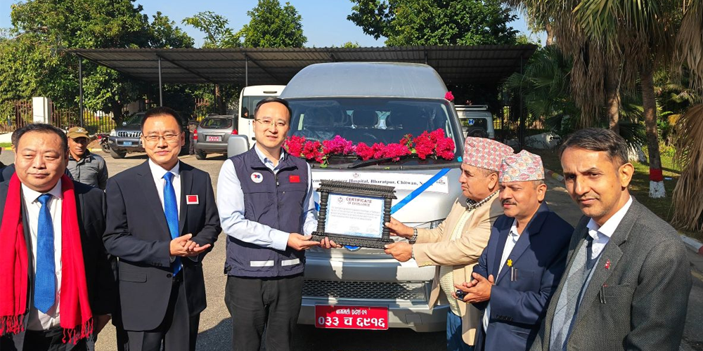 मङ्गलबार अस्पताल परिसरमा आयोजित एक कार्यक्रममा दूतावासका प्रतिनिधिले चीनमा निर्मित एउटा विद्युतीय सवारीसाधन अस्पताललाई हस्तान्तरण गरेका हुन् । चिनियाँ दूतावासका अनुसार ‘सुखी समुदाय’ परियोजनाअन्तर्गत चीनले उक्त बहान अस्पताललाई हस्तान्तरण गरेको हो ।