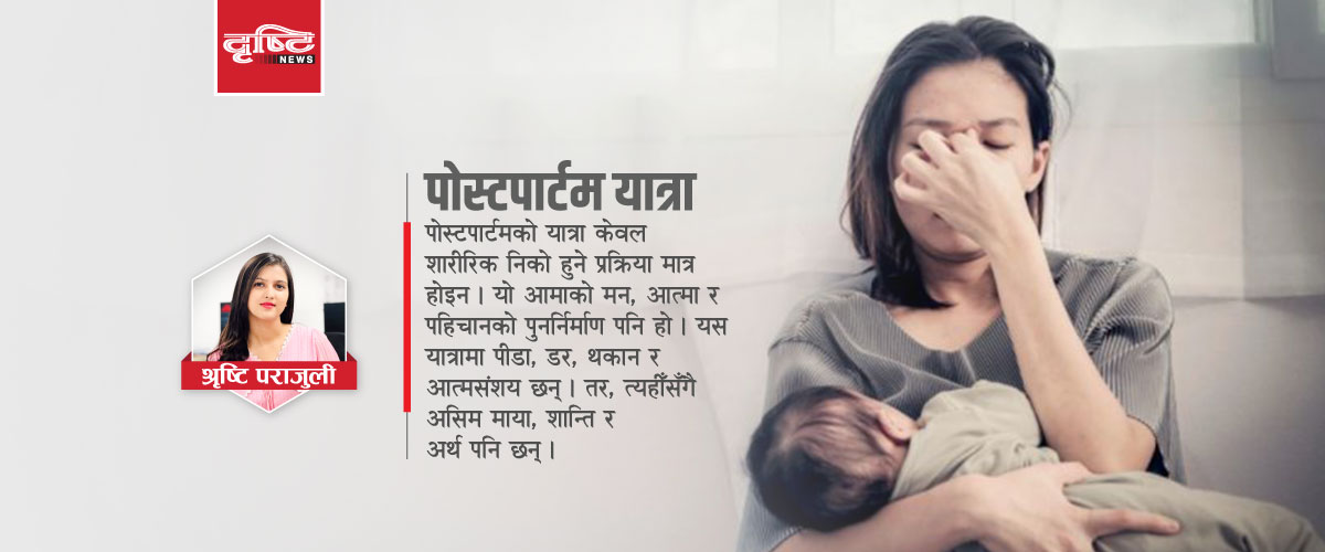 पोस्टपार्टमको यात्रा केवल शारीरिक निको हुने प्रक्रिया मात्र होइन । यो आमाको मन, आत्मा र पहिचानको गहिरो पुनर्निर्माण हो । यस यात्रामा पीडा, डर, थकान र आत्मसंशय छन्, तर त्यहीँसँगै असिम माया, शान्ति र अर्थ पनि छन् । यही कठिन यात्राले आमालाई कमजोर होइन, अझ संवेदनशील, गहिरो र प्रेमले भरिएको बनाउने रैछ ।