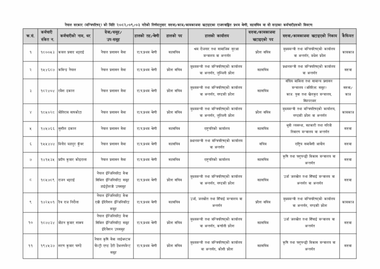 उक्त निर्णय कार्यान्वयन गर्दै आज सङ्घीय मामिला तथा सामान्य प्रशासन मन्त्रालयले सरुवा र काजमा खटाएको हो ।