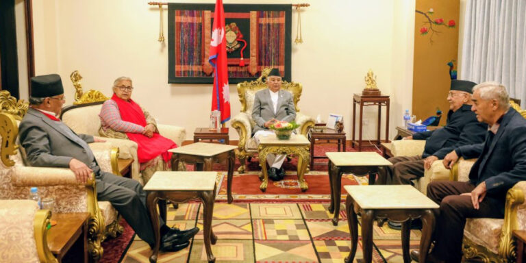 शीतलनिवासमा राष्ट्रपति, प्रधानमन्त्री र शीर्ष दलका नेताबिच झण्डै ३ घण्टा छलफल