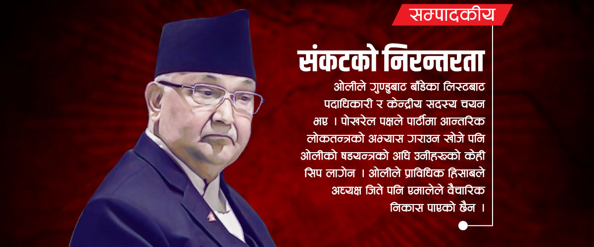 एमाले अध्यक्ष केपी शर्मा ओलीकै कारण मुलुक अहिले संक्रमणकालमा छ । एमालेमा तेस्रो कार्यकाल अध्यक्ष बनेपछि ओलीको अभिव्यक्ति सुन्दा थप मुठभेडको जोखिम बढेको छ । कांग्रेसको समर्थनमा ओली सरकारले भ्रष्टाचारीहरूलाई संरक्षण गरेपछि जेनजी युवाहरूले सुरुमा सामाजिक सञ्चारबाट विरोध गरेका थिए ।