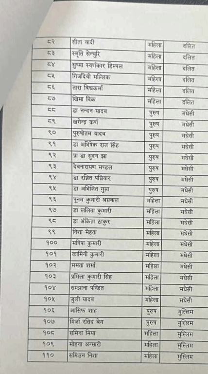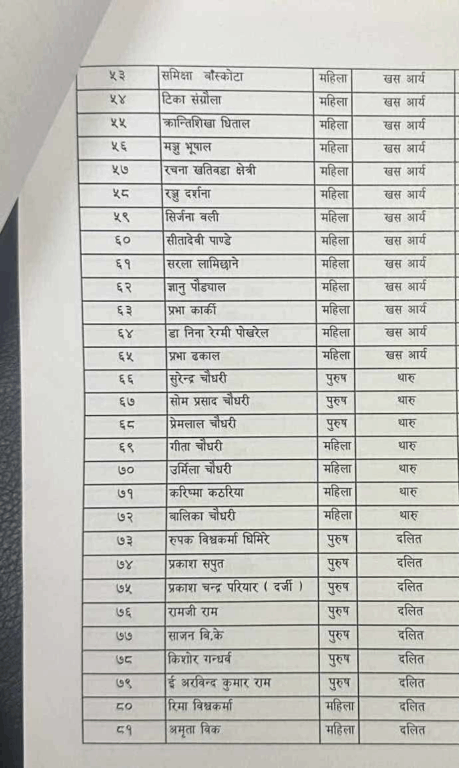 त्यस्तै रास्वपाले जसमा चमार समुदायका स्वास्थ्य अभियन्ता डा. रामजी रामलाई पनि समानुपातिक सूचीमा समावेश गरेको छ । रास्वपाले पेश गरेको बन्दसूचीमा गायक प्रकाश सपुत, कलाकार रिमा विश्वकर्मादेखि क्रिकेटर ज्ञानेन्द्र मल्लसम्म अटाएका छन् ।