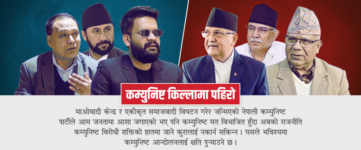 राजनीतिक ध्रुवीकरण भइरहेको बेला कांग्रेस र एमाले भने कुहिरोको काग बनेका छन् । कांग्रेस पार्टी कम्युनिष्ट विरोधी भएकाले अन्ततः उसको विचार नयाँ अनुहारसँग मिल्न सक्छ । तर, दुर्भाग्य नेपालमा ठुलो जनमत कम्युनिष्ट पार्टीसँग भए पनि एमाले अध्यक्ष केपी शर्मा ओलीका कारण कम्युनिस्टहरू छिन्नभिन्न छन् ।