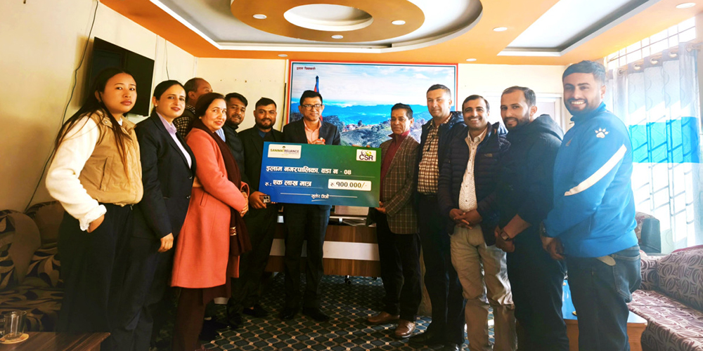 उक्त सहयोग रकम सानिमा रिलायन्स लाईफ इन्स्योरेन्सका प्रदेश प्रमुख कर्मराज पौडेलको उपस्थितिमा इलाम नगरपालिकाका मेयर केदार थापालाई हस्तान्तरण गरिएको हो।
