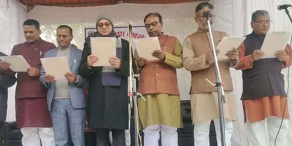नवनियुक्त मन्त्रीहरूले आजै शपथ ग्रहण समेत गरेका छन् । नवनियुक्त मन्त्रीहरूलाई प्रदेश प्रमुख डा सुरेन्द्र लाभले पद तथा गोपनीयताको शपथ ग्रहण गराएका हुन् ।