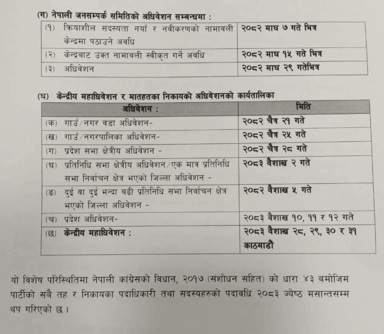कांग्रेसको १५ औँ महाधिवेशन वैशाख २८ देखि ३१ गतेसम्म गर्न प्रस्ताव