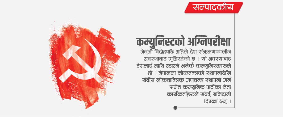 जेनजी विद्रोहपछि अहिले देश संक्रमणकालीन अवस्थाबाट गुज्रिरहेको छ । यो अवस्थाबाट देशलाई माथि उठाउने भनेकै कम्युनिस्टहरूले हो । नेपालमा लोकतन्त्रको स्थापनादेखि संघीय लोकतान्त्रिक गणतन्त्र स्थापना गर्न समेत कम्युनिष्ट पार्टीका नेता कार्यकर्ताहरूले संघर्ष, बलिदानी दिएका छन् ।