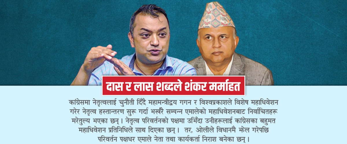 काठमाडौं । नेपाली कांग्रेसमा नेतृत्वलाई चुनौती दिँदै महामन्त्रीद्वय गगन थापा र विश्वप्रकाश शर्माले विशेष महाधिवेशन गरेर नेतृत्व हस्तान्तरण सुरु गर्दा भर्खरै सम्पन्न एमालेको महाधिवेशनबाट निर्वाचितहरू मरेतुल्य भएका छन् ।
