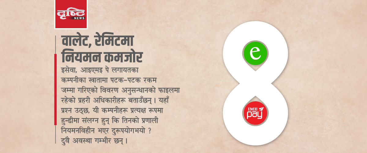 हालै नेपाल प्रहरीको केन्द्रीय अनुसन्धान ब्युरोले गरेको अनुसन्धानले डिजिटल वालेट र मनी ट्रान्सफर कम्पनीका खाताहरू प्रयोग गरी भारतबाट अवैध रूपमा रकम नेपाल भित्र्याइएको संगठित जालो उजागर गरेको छ । जसले नेपालमा सञ्चालनमा रहेका डिजिटल वालेट र मनी ट्रान्सफरबारे नयाँ कोणबाट छलफल गरिनुपर्ने देखाएको छ ।