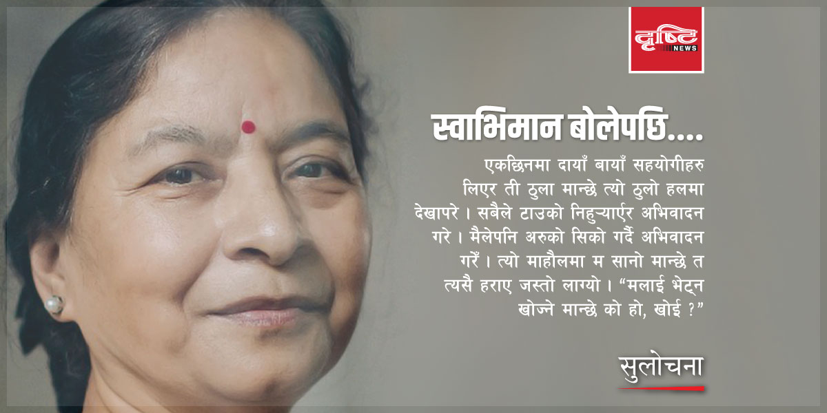 ‘… ती मान्छे अलि सनकी जस्ता पनि छन् । उनी खुसी भए तिमीले भनेको सबै काम बन्छ । उनले ‘नो’ भनेपछि भने कसैको केही लाग्दैन…।’ उनका कुरा सुनेँ मात्र । मैले धेरै ठुलो आशा बोकेको पनि थिइन । मैले ’हस्’ भनेर छोटो उत्तर दिएँ ।
