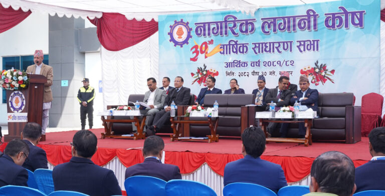 काठमाडौं । नागरिक लगानी कोषको ३१ औं वार्षिक साधारणसभा कोष सञ्चालक समितिका अध्यक्ष तुलसीप्रसाद घिमिरेको अध्यक्षतामा सम्पन्न भएको छ । सभाले आर्थिक वर्ष २०८१/८२ को आम्दानी बाँडफाँट हिसाब विवरणमा छुट्याइएको प्रस्तावित पाँच प्रतिशत बोनस सेयर र ८ प्रतिशत नगद लाभांशको प्रस्ताव पारित गरेको छ ।