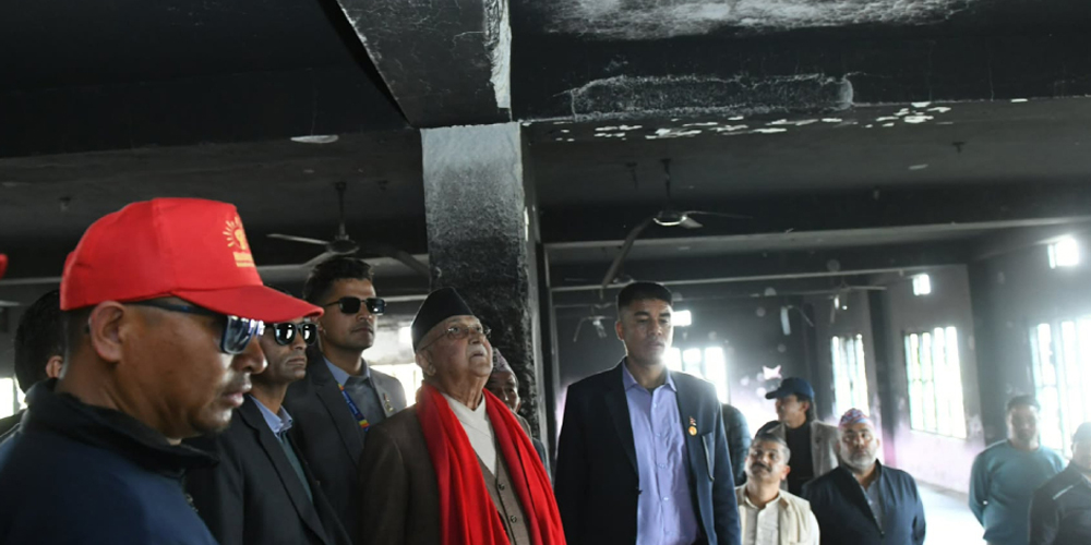 काठमाडौं । नेकपा एमालेका अध्यक्ष केपी शर्मा ओलीले आफ्नो दमकस्थित जलेको घरको निरीक्षण गरेका छन् । ओलीले आफ्ना घरका सामान सबै जलेको विषयमा आफ्ना नेता कार्यकर्ताहरूसँग छलफल गरेका थिए ।
