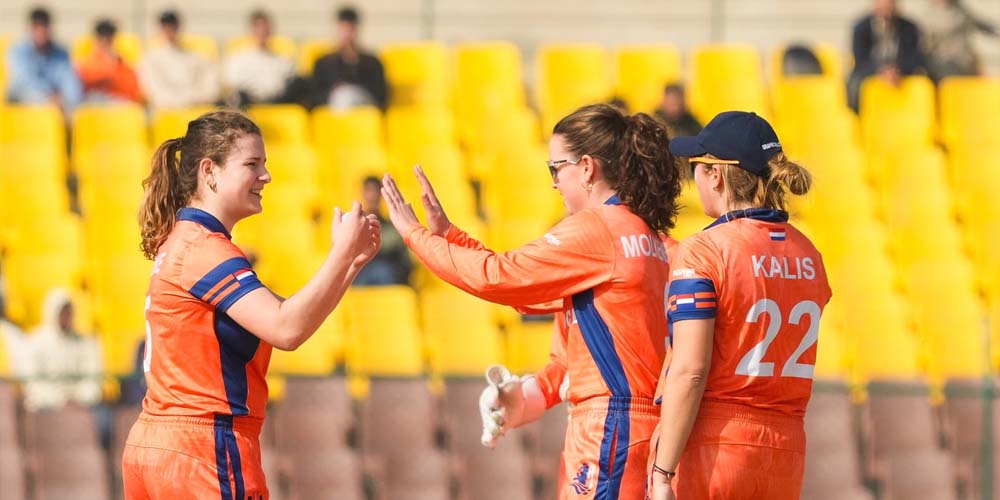 नेदरल्यान्ड्सका लागि इसाबेल भान डर वोनिङले ३ विकेट लिइन् । सिल्भर सिगर्स, रोबिन रिके र कारोलिन डे लाङले १–१ विकेट लिए ।