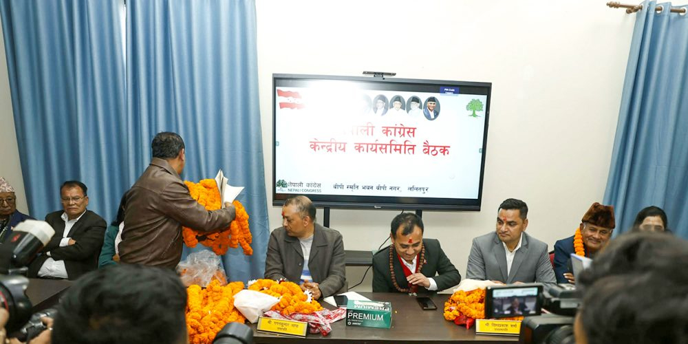 काठमाडौं । नेपाली कांग्रेसको केन्द्रीय कार्यसमिति बैठक पार्टी केन्द्रीय कार्यालय सानेपामा जारी छ । विशेष महाधिवेशनबाट गगनकुमार थापा नेतृत्वमा नयाँ कार्यसमिति निर्वाचित भएर आएपछि पार्टी कार्यालयमा पहिलोपटक बैठक बसेको हो ।