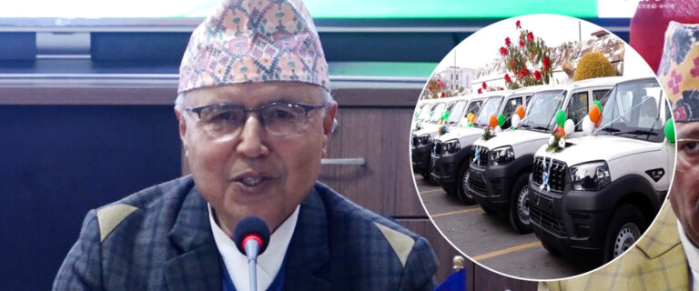 कार्यक्रममा अर्थमन्त्री रामेश्वर खनालले चुनावका लागि लक्षित गरेर भारत सरकारले अनुदानमा दिएका सवारीहरू स्वीकार गरिएको बताए।