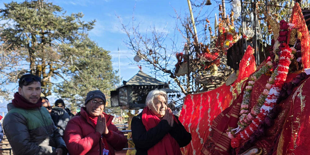 पाथिभराको दर्शन गर्दै प्रधानमन्त्री कार्कीले गरिन् शान्तिपूर्ण निर्वाचनको कामना