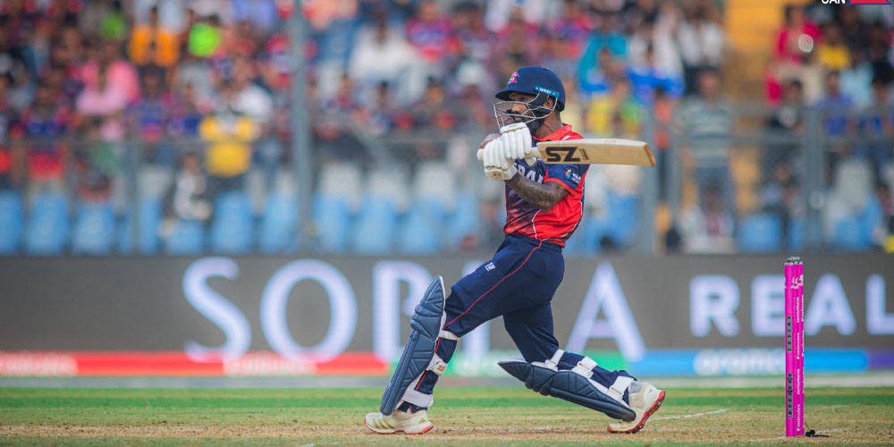 नेपालका लागि दिपेन्द्र सिंह ऐरीले शानदार अर्धशतकीय पारी खेल्दै नेपाललाई सम्मानजनक अवस्थामा पुर्याएका थिए । दिपेन्द्र विश्वकपमा अर्धशतक बनाउने दोस्रो नेपाली खेलाडी बनेका छन् । ऐरीले ४७ बलमा ५८ रन बनाएका थिए । त्यस्तै सोमपाल कामीले अविजित २६ रन बनाए भने लोकेश बमले १३, गुलशन झा र आसिफ सेखले ११-११ रन बनाएका थिए । त्यस्तै कुशल भुर्तेलले १, कप्तान रोहित पौडेलले ५, आरिफ सेखले २ रन बनाएका थिए ।