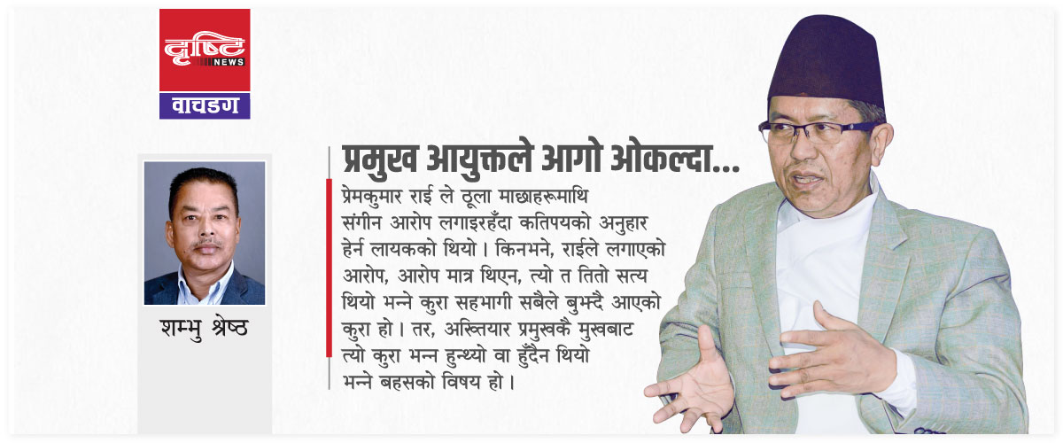 अख्तियार दिवसका दिन अख्तियार प्रमुख राईले ठूला माछाहरूमाथि संगीन आरोप लगाइरहँदा कतिपयको अनुहार हेर्न लायकको थियो । किनभने, राईले लगाएको आरोप, आरोप मात्र थिएन, त्यो त तितो सत्य थियो भन्ने कुरा सहभागी सबैले बुझ्दै आएको कुरा हो । तर, अख्तियार प्रमुखकै मुखबाट त्यो कुरा भन्न हुन्थ्यो वा हुँदैन थियो भन्ने बहसको विषय हो ।