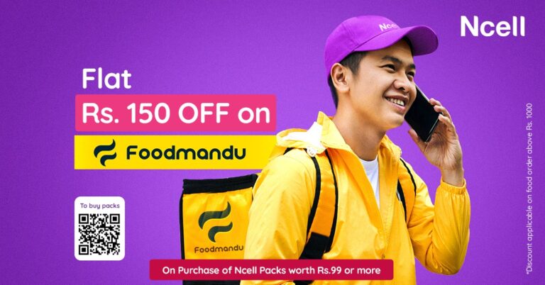यो अफरमा एनसेलका ग्राहकहरूले फुडमाण्डुमा गर्ने खानाका परिकारको अर्डरमा रु. १५० को छुट पाउँछन् ।